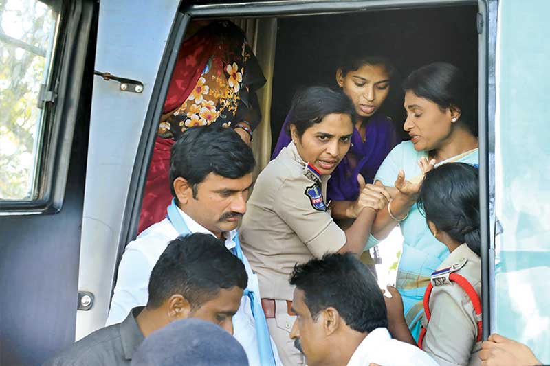 اس دوران پولیس نے صورتحال پرقابوپانے کے لئے ہلکی طاقت کااستعمال کیا۔ ٹی آرایس ایم ایل اے‘پی سدرشن ریڈی کے خلاف قابل اعتراض ریمارکس کے بعد پولیس نے شرمیلا کوگرفتارکرلیا۔ شرمیلا نے پولیس سے سوال کیا کہ ان کی بس پرحملہ میں ملوث افراد گرفتار کرنے کے بجائے انہیں کیوں حراست میں لیاجارہا ہے۔