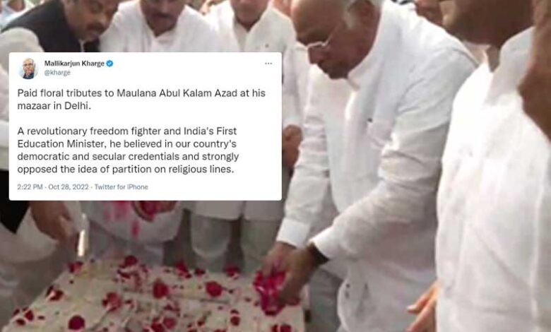 کانگریس کے نئے صدر نے ملک کے پہلے وزیر تعلیم مولانا ابوالکلام آزاد کے مزار جاکر گلہائے عقیدت پیش کئے۔