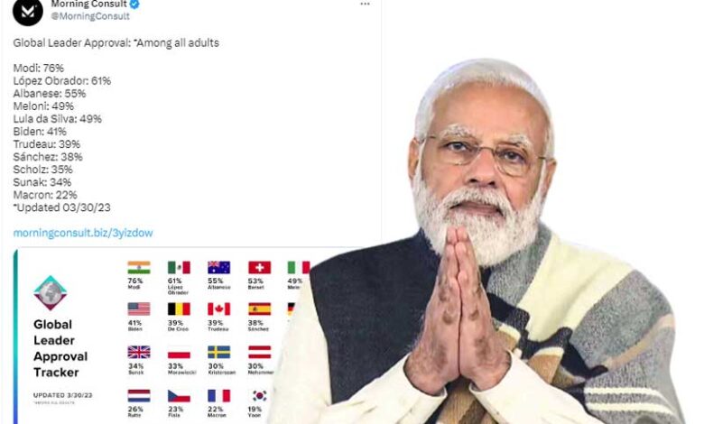 وزیر اعظم نریندر مودی ایک بار پھر دنیا کے سب سے مقبول ترین قائد کے طور پر ابھرے ہیں اور انہوں نے کئی لیڈروں بشمول اپنے امریکی ہم منصب جوبائیڈن کو بھی پیچھے چھوڑ دیا ہے۔