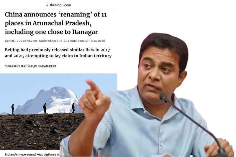 آج ٹوئیٹر پر تبصرہ کرتے ہوئے کے ٹی راما راؤ نے کہا کہ چین‘ ہندوستانی دیہاتوں کے نام تبدیل کررہا ہے اور ہمارے وزیر اعظم کافی مصروف ہیں۔