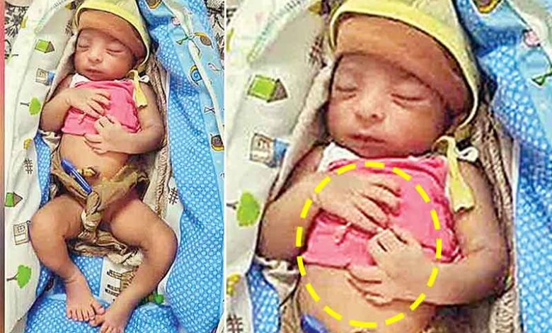 اس نوزائیدہ کے ہر ہاتھ میں 6 اور اس کے ہرپیر میں 6انگلیاں ہیں۔ بتایا گیا ہے کہ زچہ اور بچہ دونوں کی صحت مستحکم ہے۔