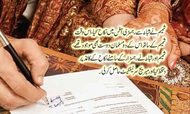 سوال:- شمیم نے شبانہ سے رجسٹری آفس میں نکاح کیا، اس وقت شمیم کے ساتھ اس کے دو مسلمان دوست بھی موجود تھے ، شمیم اور شبانہ نے رجسٹرار کے سامنے نکاح کے کاغذ پر دستخط کیا اورمیریج سر ٹیفکیٹ حاصل کرلی ،