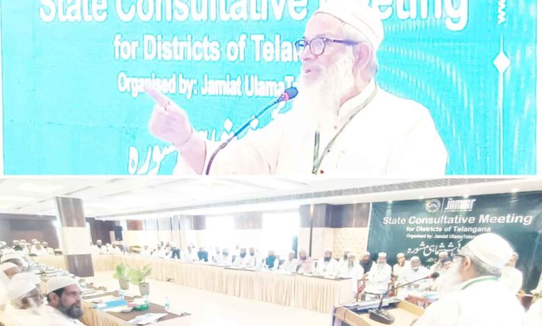حیدر آباد: جمعیتہ علماء تلنگانہ کا ششماہی ایک روزہ مشورہ حضرت مولانا حافظ پیر شبیر احمد صاحب مدظلہ صدر جمعیۃ علماء تلنگانہ کی زیر صدارت بمقام : پارک کونٹی فیصل ہوٹل مہدی پٹنم حیدر آباد میں منعقد ہوا۔