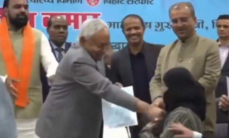 بہار چیف منسٹر نے سر عام مسلم خاتون کا نقاب کھینچ دیا، نتیش کمار کو بھگوا جماعت کی صحبت کا اثر ہونے لگا