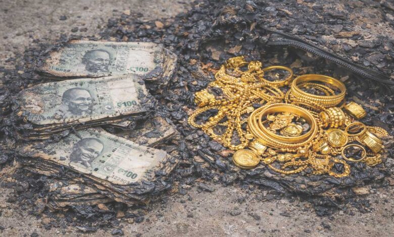 اے پی: بیگ سے لاکھوں روپئے کی جلی ہوئی نقدی اور سونا برآمد