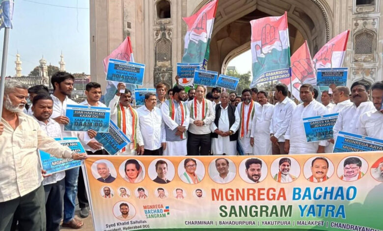 حیدرآباد: حیدرآباد میں کانگریس نے منریگا اسکیم کو کمزور کرنے کی کوششوں کے خلاف منریگا بچاؤ سنگرام یاترا نکالی۔
