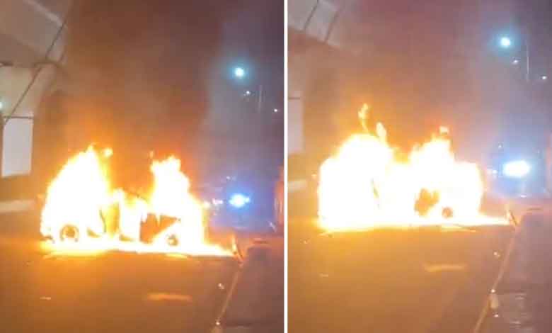 حیدرآباد: شہرحیدرآباد کے اُپل اسٹیڈیم کے قریب کارڈیوائیڈر سے ٹکرانے کے بعد شعلہ پوش ہوگئی۔اس حادثہ کے ساتھ ہی کار میں سواردوافراد فوری چوکسی کامظاہرہ کرتے ہوئے کار سے اترگئے۔