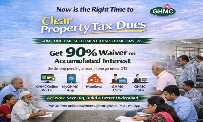 GHMC نے ون ٹائم سیٹلمنٹ (OTS) اسکیم 26-2025 کو جاری رکھتے ہوئے بقایا پراپرٹی ٹیکس پر عائد سود میں 90 فیصد چھوٹ دینے کا فیصلہ کیا ہے۔