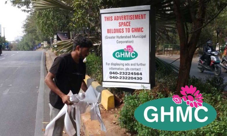 حیدرآباد میں غیر مجاز اشتہارات کے خلاف جی ایچ ایم سی کی خصوصی مہم، غیر قانونی ہورڈنگس ہٹانے کا آغاز