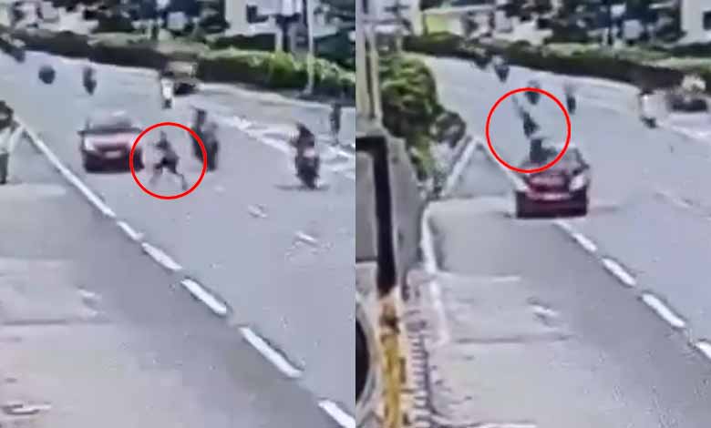 یہ حادثہ تلنگانہ کے میڑچل۔پوچارم آئی ٹی کاریڈار کے قریب پیش آیا جس کی ویڈیو ٹریفک جنکشن پر لگے سی سی ٹی وی کیمرہ میں قید ہوگئی۔