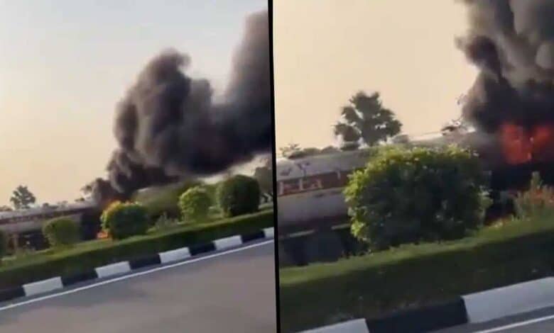 حیدرآباد: چلتے ٹینکر میں آگ لگ گئی