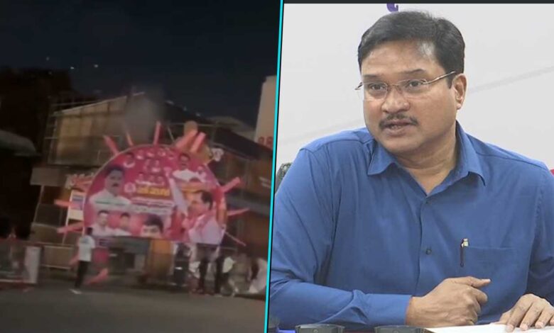 تفصیلات کے مطابق ڈیزاسٹر ریسپانس فورس (ڈی آر ایف) کے ملازمین نے بی آر ایس پارٹی کی سلور جوبلی تقاریب کے سلسلہ میں لگائے گئے پوسٹرس اور فلیکسی بورڈس کو رات گئے ہٹا دیا۔