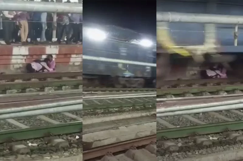کرناٹک: بیٹے نے ماں کو تیز رفتار ٹرین کے نیچے آنے سے بچالیا (وائرل ویڈیو)