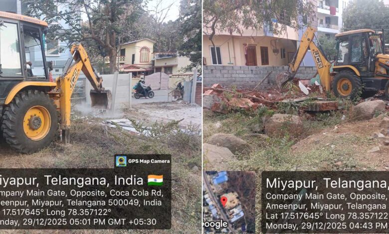 حیدرآباد کے مضافاتی علاقے مدینہ گوڑہ میں ایک بڑی کارروائی کے دوران حائیڈرا (HYDRAA) نے عوامی مفاد میں مختص 1000 گز پر مشتمل پارک کی زمین کو ناجائز قبضے سے بچا لیا۔