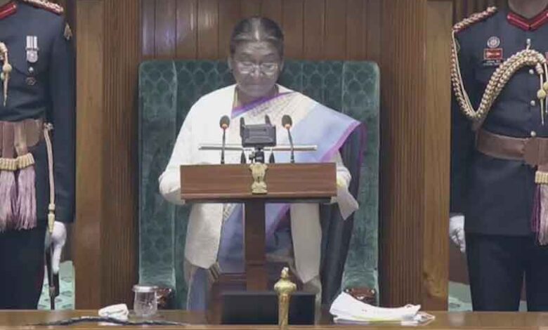 صدرجمہوریہ دروپدی مرمو نے چہارشنبہ کے دن پارلیمنٹ کے دونوں ایوانوں کے مشترکہ اجلاس سے خطاب کیا۔ انہوں نے دفعہ 370کی برخواستگی معاشی اصلاحات‘ تعلیمی اصلاحات اور اندرون ملک دفاعی آلات کی تیاری کا ذکرکیا۔