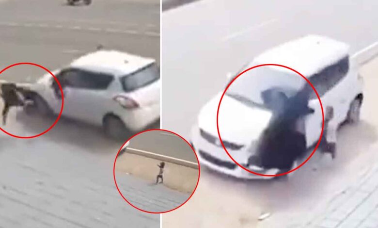 بیٹے کا ہاتھ تھامے جارہی ماں کو تیز رفتار کار نے اُڑادیا (دلخراش ویڈیو وائرل)