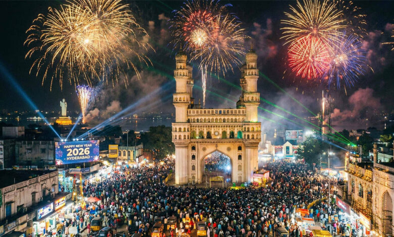حیدرآباد، سکندرآباد اور تلنگانہ کے دیگر حصوں میں نئے سال 2026 کا استقبال انتہائی جوش و خروش کے ساتھ کیاگیا