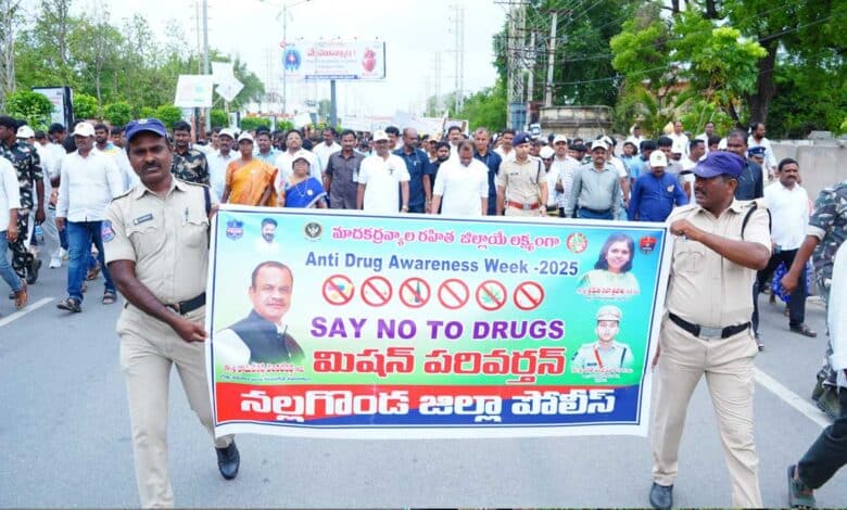 تلنگانہ کے مختلف مقامات پر منشیات کے خلاف ریلیاں