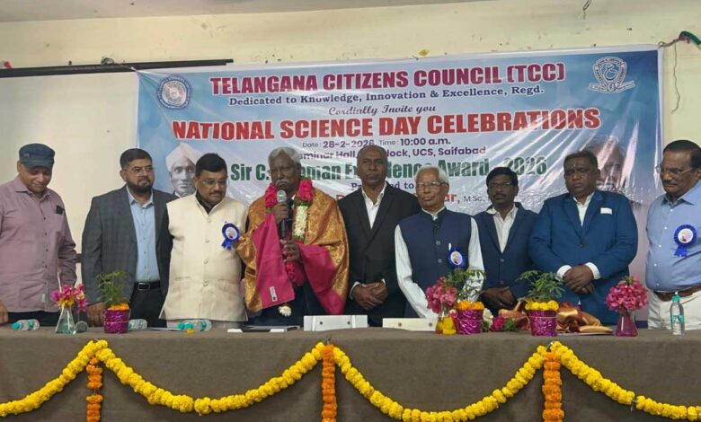 حیدرآباد: قومی یومِ سائنس کے موقع پر ممتاز ماہرِ طبیعیات پروفیسر ڈی۔ کروناساگر کو “سر سی وی رمن ایکسیلینس ایوارڈ 2026” سے نوازا گیا۔ یہ تقریب یونیورسٹی کالج آف سائنس آڈیٹوریم، سیف آباد میں منعقد ہوئی، جس کا اہتمام تلنگانہ سٹیزنز کونسل کی ریاستی برانچ کے زیرِ اہتمام کیا گیا۔