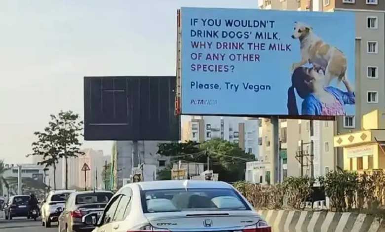 ورلڈ مِلک (MILK) ڈے (یکم جون) کے موقع پر جانوروں کے حقوق کے لیے کام کرنے والی بین الاقوامی تنظیم PETA انڈیا نے ایک انوکھا اور چونکا دینے والا بل بورڈ مہم شروع کی ہے۔ اس بل بورڈ میں ایک عورت کو کتیا (مادہ کتے) کا دودھ پیتے ہوئے دکھایا گیا ہے