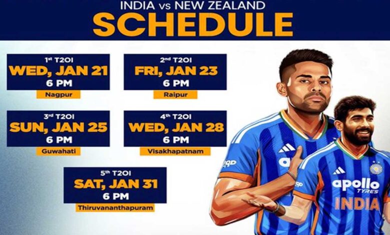 ہندوستان اور نیوزی لینڈ کے درمیان ٹی ٹوئنٹی میچز 21 جنوری سے شروع ہوگے