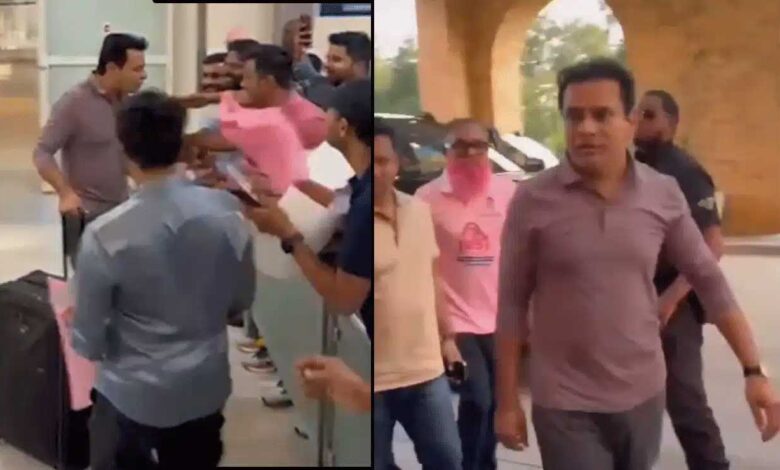 حیدرآباد: بھارت راشٹرا سمیتی (بی آر ایس) کے کارگذارصدر کے۔ ٹی۔ راما راؤ کا امریکہ کے دو روزہ دورہ کے سلسلہ میں ڈالاس ایئرپورٹ پہنچنے پر امریکہ میں مقیم بی آر ایس این آر آئی نمائندوں اور بڑی تعداد میں تلنگانہ کے غیر مقیم ہندوستانیوں نے پرتپاک استقبال کیا۔