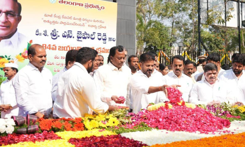 وزیر اعلیٰ نے گل ہائے عقیدت نذر کیے اور قوم و ریاست کے لیے جے پال ریڈی کی خدمات کو یاد کیا۔
