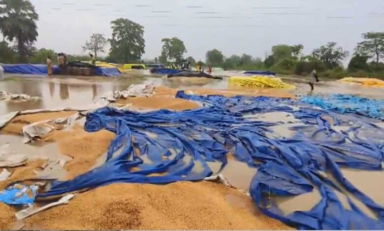 حیدرآباد: تلنگانہ کے محبوب آبادضلع میں ہوئی غیرموسمی بارش نے کسانوں کی محنت پر پانی پھیر دیا۔ تیز آندھی اور بارش کے باعث خریداری مراکز پر رکھے گئے دھان کے انبار ترہوگئے۔