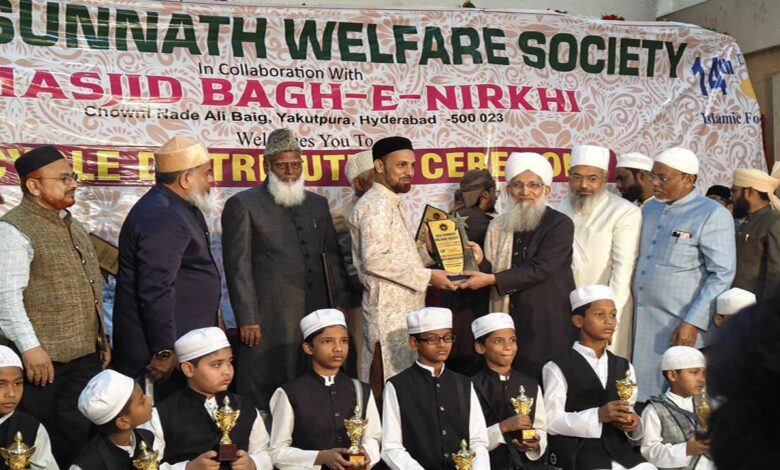 حیدرآباد : 14ویں 100 روزہ اسلامی فاؤنڈیشن پروگرام اور سائیکل تقسیم کا اختتامی جلسہ گزشتہ اتوار 11 جنوری کو ایم این فنکشن ہال، کرما گوڑہ سعیدآباد میں نہایت شاندار اور روح پرور انداز میں منعقد ہوا۔ یہ پروگرام مسجد باغ نرخی چھاؤنی ناد علی بیگ، یاقوت پورہ کی جانب سے منعقد کیا گیا جس میں گزشتہ 100 دنوں سے روزانہ فجر کی نماز کی پابندی کے ساتھ ایک گھنٹہ تعلیمی سلسلہ جاری تھا۔ اس پروگرام میں باقاعدگی سے شرکت کرنے والے طلبہ میں سے 72 طلبہ نے امتحان میں کامیابی حاصل کی، جنہیں مسجد کمیٹی کی جانب سے سائیکلیں اور سرٹیفکیٹ تقسیم کئے گئے۔