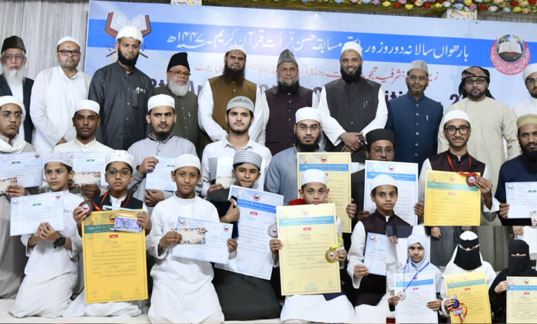 شرفیہ قرأت اکیڈمی کے بارھویں دو روزہ حسن قرأت قرآن کریم مسابقے کا کامیاب اختتام