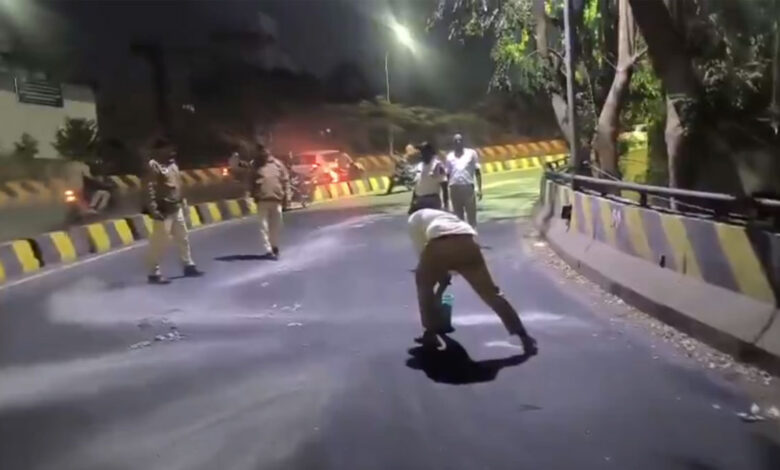 نلگنڈہ ایکس روڈ فلائی اوور پر تیل گرنے سے ٹریفک متاثر، پولیس کے حفاظتی اقدامات