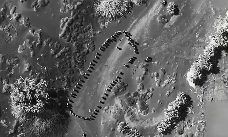 میڈیا رپورٹ کے مطابق بلیک اینڈ وائٹ فوٹیج کسی ڈرون یا فوجی جنگی طیارے سے بنائی گئی ہے، جس میں کئی لوگ ایک سڑک پر جمع دکھائی دیتے ہیں، چند ہی لمحوں میں ایک زور دار دھماکہ ہوتا دکھائی دیتا ہے، اس کے بعد دھواں بلند ہوتا دکھائی دیتا ہے، اس کے بعد ویڈیو دھماکے سے متاثرہ ایک بڑے حصے کو دکھاتی ہے۔