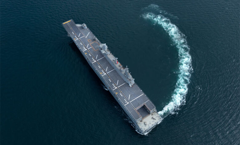 دنیا کے پہلے مسلح ڈرونز سے لیس بحری جہاز ٹی سی جی انادولو کی ایک تقریب میں ترک بحریہ کے حوالے کیے جانے کے بعد صدر رجب طیب ایردوان نے اس بحری جہاز کا معائنہ کیا۔