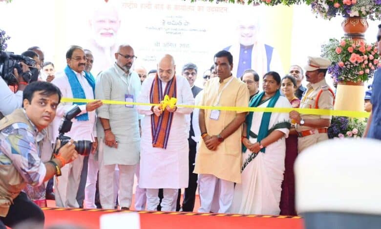امیت شاہ نے کلکٹریٹ دفتر کے قریب ہیلی پیڈ پر اترنے کے بعد سخت حفاظتی حصار میں خصوصی قافلے کے ہمراہ وِنائک نگر پہنچ کر نئے تعمیر شدہ قومی ہلدی بورڈ کے دفتر کا افتتاح کیا۔