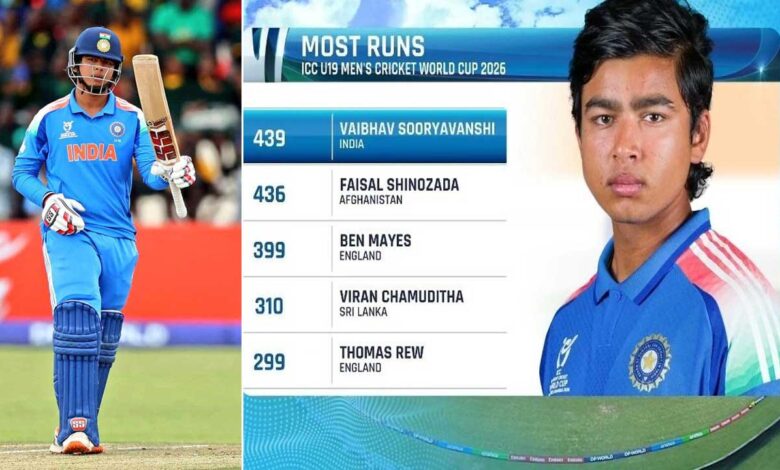ہرارے : ویبھو سوریہ ونشی (175) کی جارحانہ سنچری، کپتان آیوش مہاترے (53) اور ابھیگیان کنڈو (40) کی ذمہ دارانہ اننگز کی بدولت ہندوستان نے جمعہ کو انڈر-19 ورلڈ کپ کے فائنل میں انگلینڈ کے خلاف 9 وکٹوں کے نقصان پر 411 رن کا ہمالیائی اسکور بنایا ہے۔
