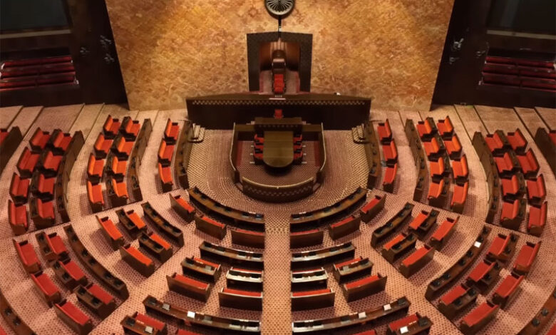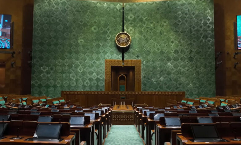 ویڈیو: نئی پارلیمنٹ کی جھلکیاں، میور تھیم والی لوک سبھا میں سبز اور راجیہ سبھا میں بھگوا رنگ کا غلبہ