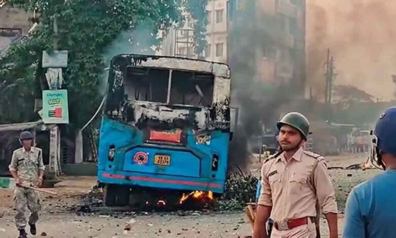 Violence breaks out، مرشد آباد میں وقف قانون کے خلاف احتجاج کے دوران تشدد پھوٹ پڑا،2 افراد ہلاک